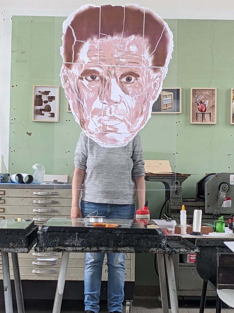 mon projet empreintes est représenté par deux grands visages qui sont parsemé de petit portraits qui symbolise l'empreinte laissé par les autres dans notre vie, les visages sont déchirés pour représenté les différents passages de la vie